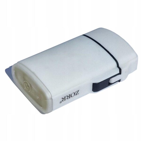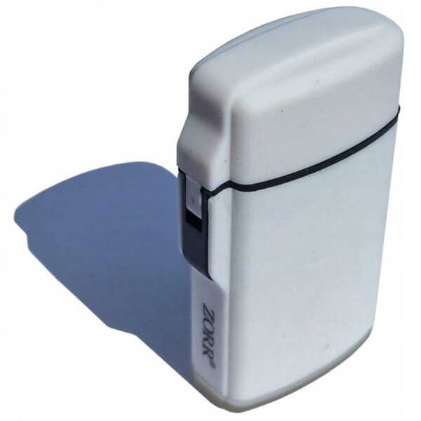 Klastyczna zapalniczka żarowa marki ZORR w kolorze białym. Niebieski płomień JET jest odporny na wiatr i idealny do użytku wewnątrz, jak i na zewnątrz.