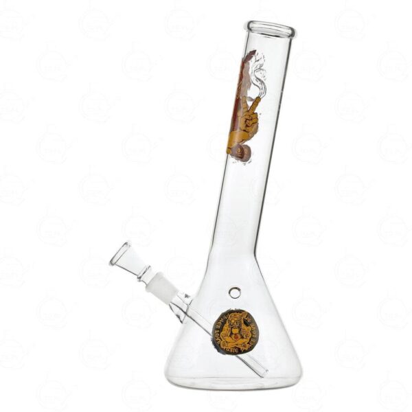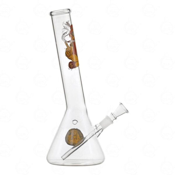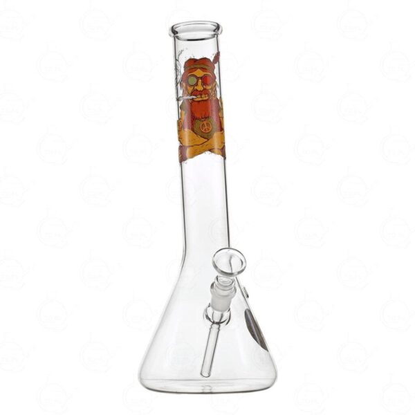 Czasy beztroskich hipisów dawno już co prawda minęły, ale ich dziedzictwo przetrwało do dziś. Żeby je odnaleźć potrzebne Ci będzie dobre, klasyczne bongo, takie jak to. Czujesz ducha lat 70? Bongo szklane SmoKing Hipis Pener 30 cm zdobi wspaniała kolorowa grafika, która jako pierwsza rzuca się w oczy. Na boku masz jeszcze dodatkowy emblemat, ale nie o walory wizualne tu tylko chodzi. Widzisz ten przekrzywiony ustnik i rozszerzaną podstawę? To dwie kluczowe cechy, które zapewnią Ci naprawdę komfortowe palenie. Wytęż słuch. Obszerny cybuch aż prosi, by nabić go suszem i podpalić! Bongo wyposażono jedynie w podstawowy rodzaj filtracji, więc będziesz mógł go używać zawsze w zgodzie z naturą i bez żadnych udziwnień. To sprzęt idealny dla ludzi ceniących sobie spokój i harmonię!