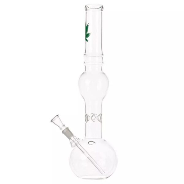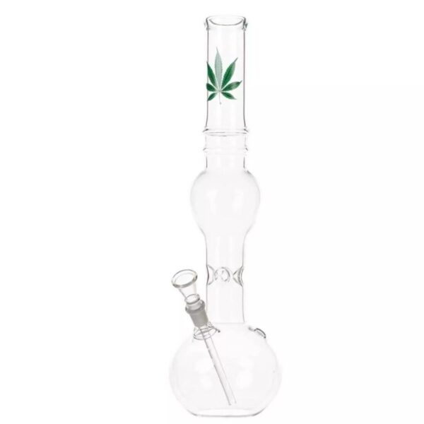 Bongo szklane Green Leaf o wysokości 39 cm, szlifie 14.5 mm i uchwycie na lód. Posiada sprzęgło.