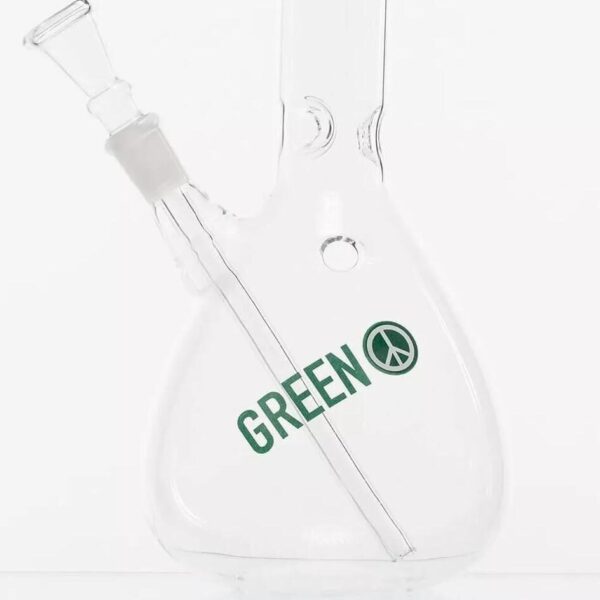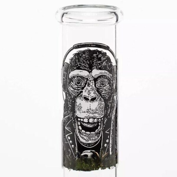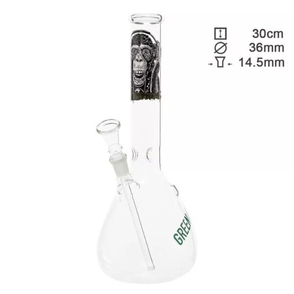 Fajka wodna Greenline o klasycznej konstrukcji jest wykonana ze szkła w kolorze przezroczystym. Jest wyposażona w wyciągany cybuch o szlifie 14.5 mm, dziurkę Turbo oraz uchwyt na lód, co sprawia, że korzystanie z niej jest wygodne i przyjemne. Na podstawie bonga widnieje logo Greenline, dodając mu charakterystycznego wyglądu. Całość jest wykończona szerokim ustnikiem. Dodatkowo, poniżej ustnika znajduje się zabawny nadruk goryla, dodający fajce wodnej Greenline unikalnego uroku.