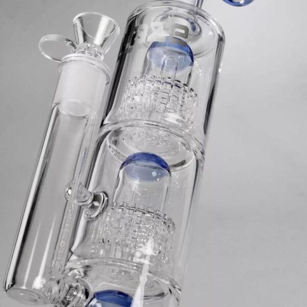 Fajka wykonana jest z borokrzemowego szkła, co gwarantuje wysoką jakość i trwałość. Dzięki ustawionym piętrowo 3 perkolatorom typu Drum, fajka zapewnia zaawansowaną filtrację i skuteczne schładzanie dymu, co pozwala na płynne i przyjemne palenie.