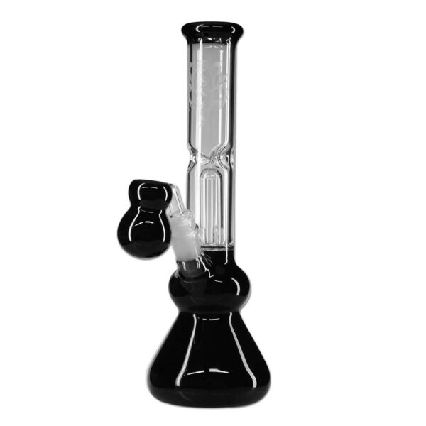 Bongo Szklane z Perkolatorem Black Leaf to gratka dla prawdziwych fanów palenia i korzystania z bongosów. W 30 centymetrach zamknięto tyle, że głowa się nie mieści! Bongo nie dość, że posiada dedykowaną filtrację, to cybuch sam w sobie jest „mini bongosem”. Jak to możliwe spytasz? A no zamiast normalnego cybucha zastosowana tutaj kulkę, do której możesz wlać wodę i cieszyć się pierwszą filtracją. Bongo posiada również miejsce na lód, jego dzban jest pojemny tak samo jak sam cybuch. Bongo wykonane zostało z grubego szkła, dzięki czemu nie jest w stanie się zbić po mniejszym upadku. Całość dopełnia ciekawy dizajn i napis „BLACK LEAF” na rurce prowadzącej do ustnika.