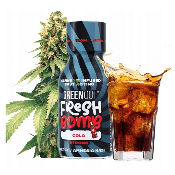 Green Out® Fresh Bomb, o smaku Cola – to smaczny, owocowy suplement konopny o przyśpieszonym oraz poszerzonym działaniu, zawierający naturalne fitokanabinoidy, flawonoidy oraz profil terpenowy odmiany Amnesia Haze.